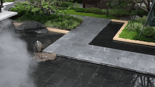 景观设计采用“一轴一环”布局,通过九大院落的启承转合及层层递进的造景手法来强调东方雅奢调性,为业主勾勒一幅“归家即度假”的写意山水画。