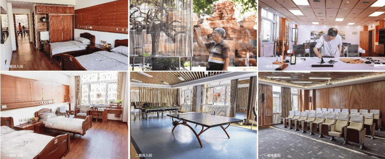 规模宏大,房型多样|占地230多亩,建筑面积达16万平米,规模位居昌平养老机构前列。聚集四合院、三合院、复式楼、排院、套房等多种北京特色房型,满足不同家庭需求;房间内独立卫生间、厨房、配套家具及日常家用电器一应俱全,居家感拉满,让长者入住即安心。3. 医养文娱双在线|作为首批昌平区医保定点单位,内设门诊部,日常小病、慢病管理不用出机构,医疗保障有底气;配套设施齐全,室内健身房、室外健身广场、棋牌室、麻将室、歌舞厅、阅览室、康复室、购物超市等应有尽有,日常休闲、康复训练一站式满足。更开办集文化娱乐、琴棋书画为一体的老年学校,兼顾长者身体养护与精神滋养,让晚年生活不单调、有质感。