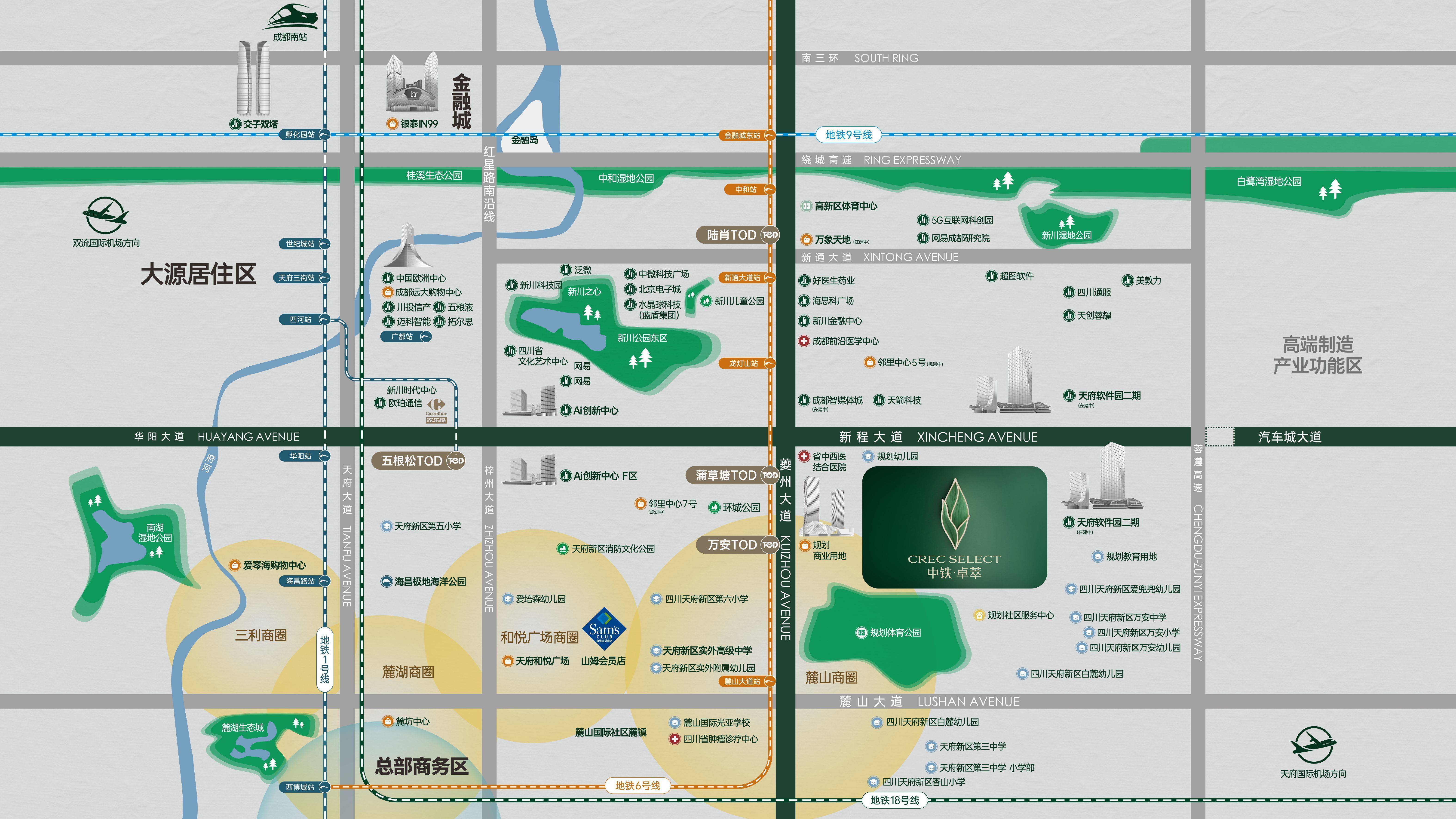 中铁·卓萃除8#、9#存在部分建面约145㎡的中户,其余均为端户设计,实现了双面采光,获得全景视野的同时进一步保证了户内的阳光权。