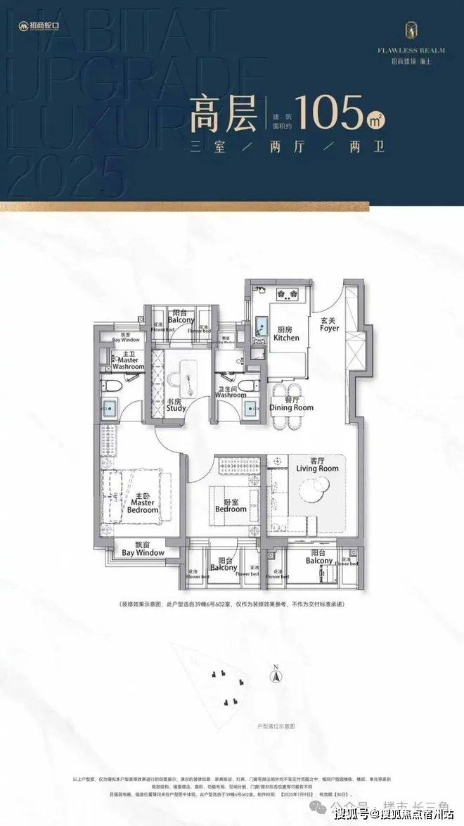 建面约105㎡3房,“三阳台”搭配花池的设计,✅✅招商臻境售楼处电线✅✅