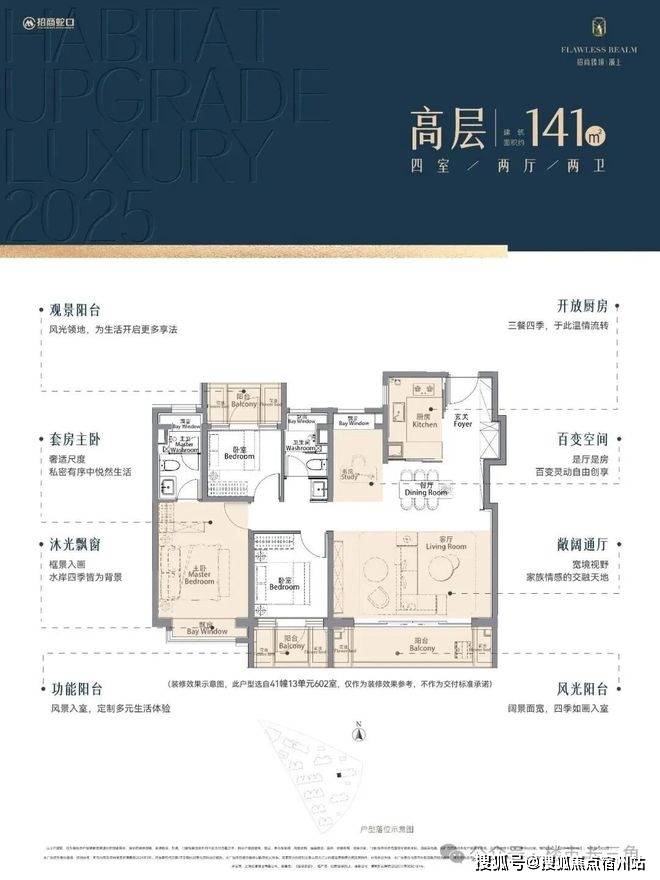 飘窗+步入式衣帽间+独立卫浴拥有2个飘窗,尊崇感与实用性拉满!三阳台+花池+4飘窗结构,✅✅招商臻境售楼处电线✅✅有效延伸空间,实际使用空间更奢阔!