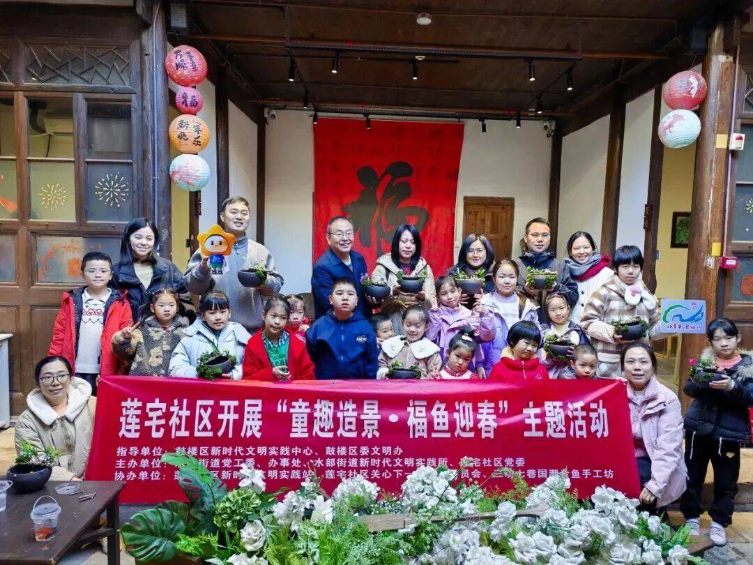 1月10日,在鼓楼区新时代文明实践中心、区委文明办指导下,水部街道党工委、办事处联合水部街道新时代文明实践所、莲宅社区党委,共同举办“童趣造景 福鱼迎春”古法鱼缸造景亲子活动,让孩子们在动手创作中体验传统民俗与自然生态之美。