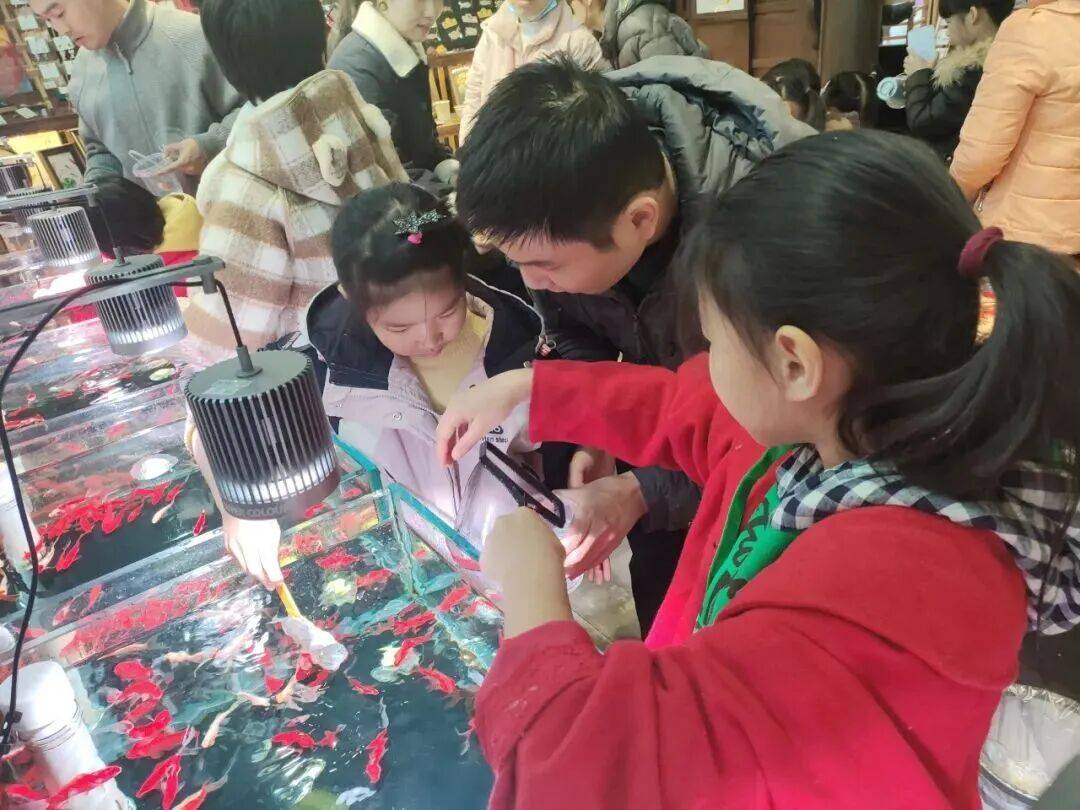 老师还介绍了古法养鱼的生态理念,讲解金鱼习性及“生态共生”的养护方式。孩子们亲手布置造景鱼缸,并兴致勃勃地投喂饵料。制作完成后,大家提着小桶、拿着渔网,兴奋地捞选金鱼带回家。一双双紧盯水面的明亮眼睛,一阵阵欢快的笑声,构成一幅生动温馨的冬日童趣画卷。
